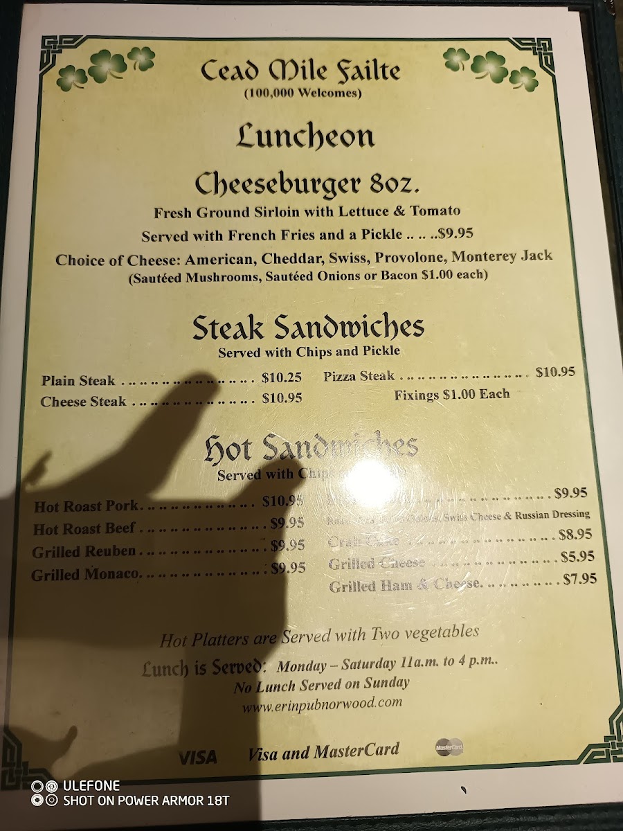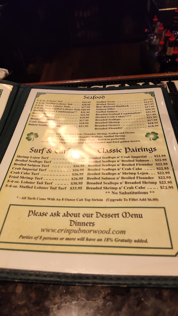 With affordable prices that range from $10 for appetizers to $25-$35 for dinner, Erin Pub ensures a satisfying dining experience. The cozy atmosphere is complemented by friendly service, making it a perfect spot for special occasions or casual outings. Indulging in a warm Irish ambiance while enjoying delicious fare is truly what makes Erin Pub a local gem.